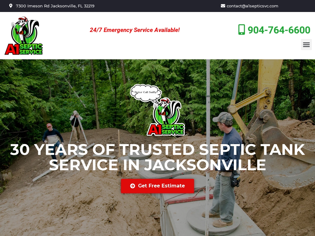 A1 Septic Service Inc. A1 Septic Service is located at. A1 Septic Service offers emergency septic tank system cleaning and repair services in Jacksonville Florida and all nearby towns.